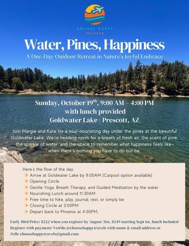 Join Margie and Kate for a soul-nourishing day under the pines at the beautiful Goldwater Lake.